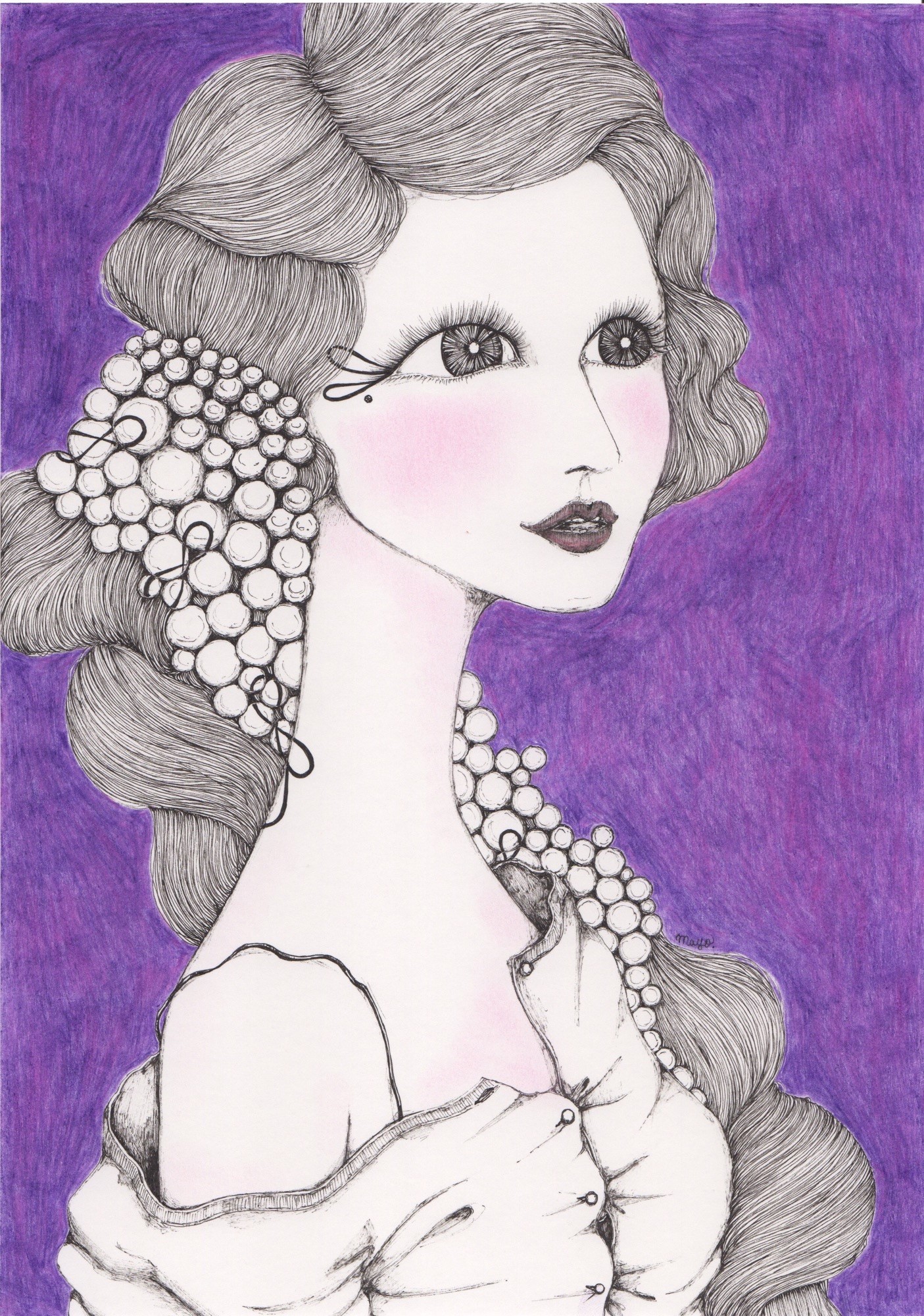 技法:ペン・水彩色鉛筆・チーク・スワロフスキーエレメンツ サイズ:A4ケントボード 額:無し